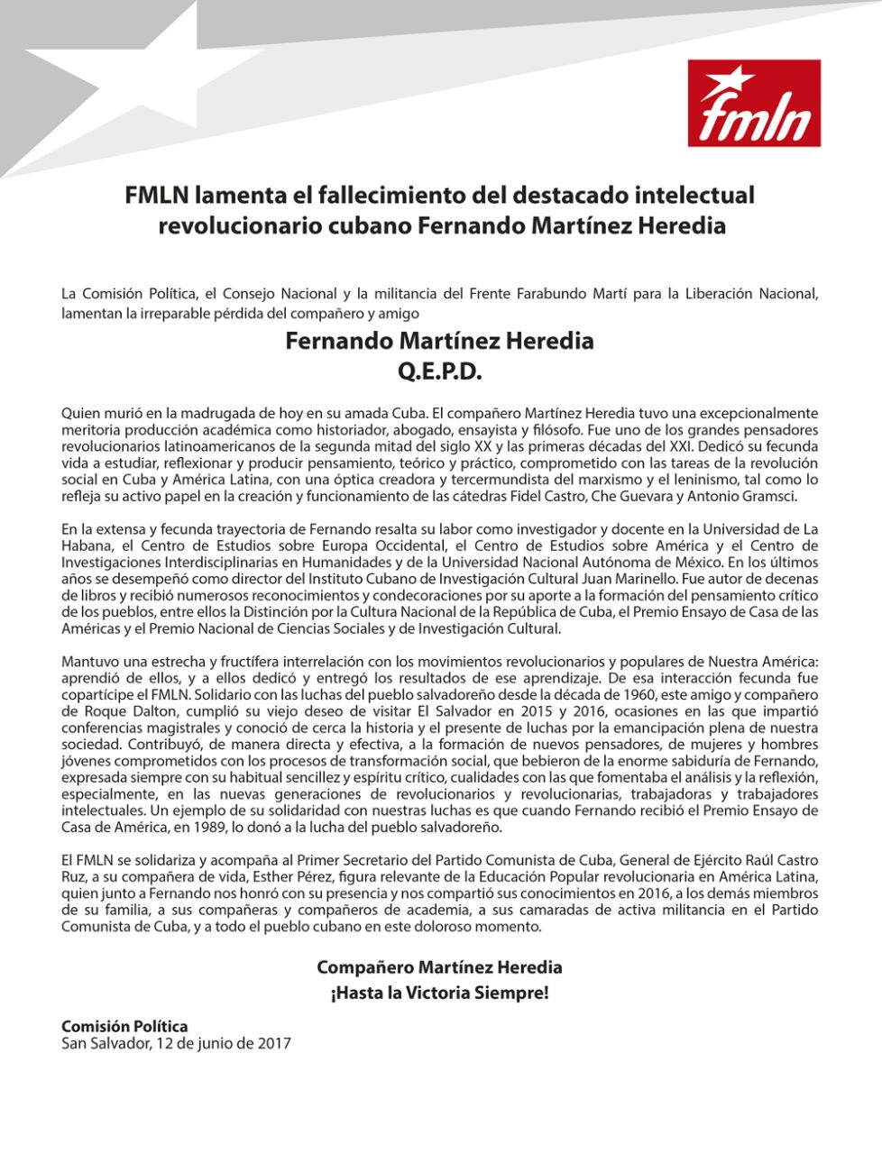 Los movimientos sociales y de solidaridad con Cuba en El Salvador, peregrinaron hoy al poblado de Chalchuapa, para recordar al revolucionario cubano-argentino Ernesto ''Che'' Guevara, en el aniversario 89 de su natalicio.