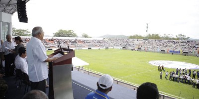 El alcalde Miguel Pereira, aseguró que fue hasta que llegó un gobierno del FMLN que se pudo remodelar el estadio Juan Francisco Barraza, inaugurado ayer martes.