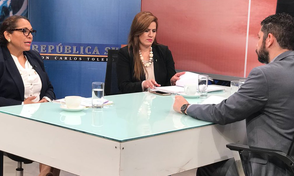 La Presidenta de la Comisión de Relaciones Exteriores y diputada por el FMLN, Karina Sosa, junto a la Directora de Migración y Extranjería, Evelyn de Marroquín, hablaron este día en una entrevista realizada en canal 33, sobre el estudio del proyecto de la Ley Especial de Migración.