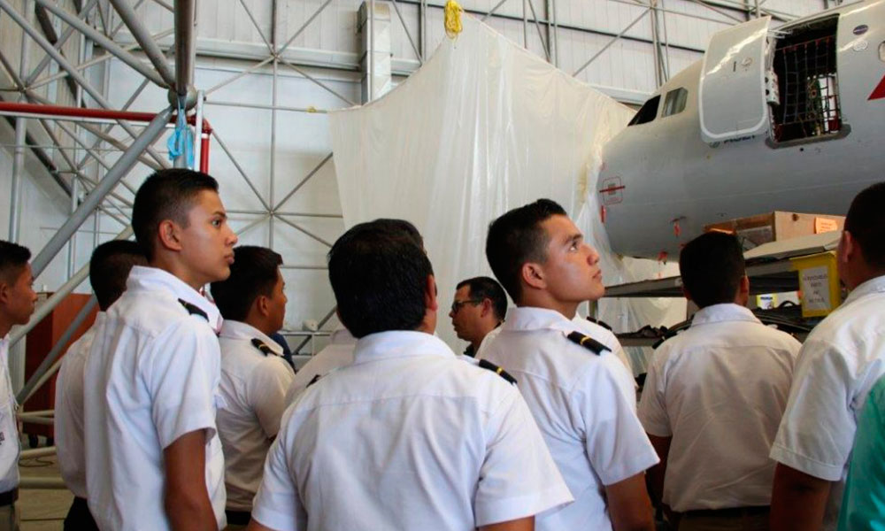 Durante la visita a las instalaciones de Aeroman, los estudiantes pudieron conocer parte del proceso de mantenimiento de las aeronaves, en tres de los seis hangares que posee la compañía.