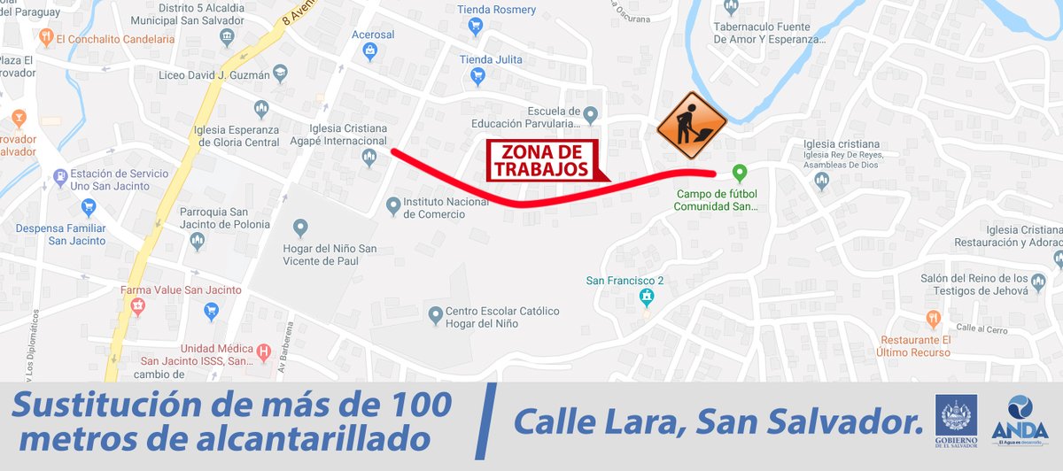 La Administración Nacional de Acueductos y Alcantarillados (ANDA), anunció para el miércoles 27 el cierre de la calle Lara, en la colonia Harrison, barrio San Jacinto, por lo que pidió a los automovilistas buscar vías alternas ya que "el paso vehicular por esa arteria estará cerrado".